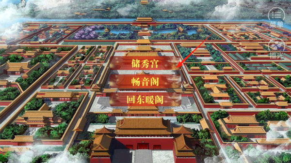 3、在宮廷地圖界面,選擇儲(chǔ)秀宮,暢音閣等地點(diǎn),點(diǎn)擊對(duì)應(yīng)建筑,進(jìn)入不同場(chǎng)景,觸發(fā)專屬劇情或任務(wù),體驗(yàn)宮廷場(chǎng)景探索玩法。