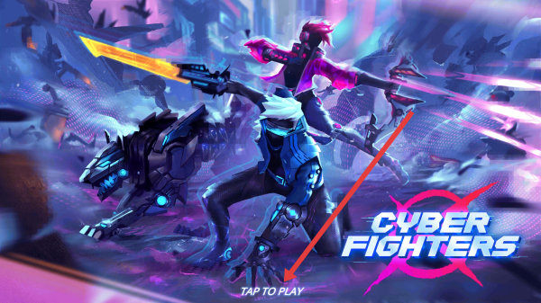 1、進入游戲初始界面,通過點擊屏幕底下TAP-TO-PLAY,開啟賽博格斗冒險,操控角色投身戰(zhàn)斗。