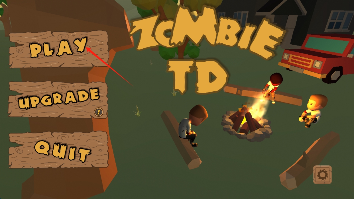 1、在Zombie-TD游戲啟動界面,跟隨箭頭提示,點擊PLAY,開啟僵尸塔防冒險,點擊開始。