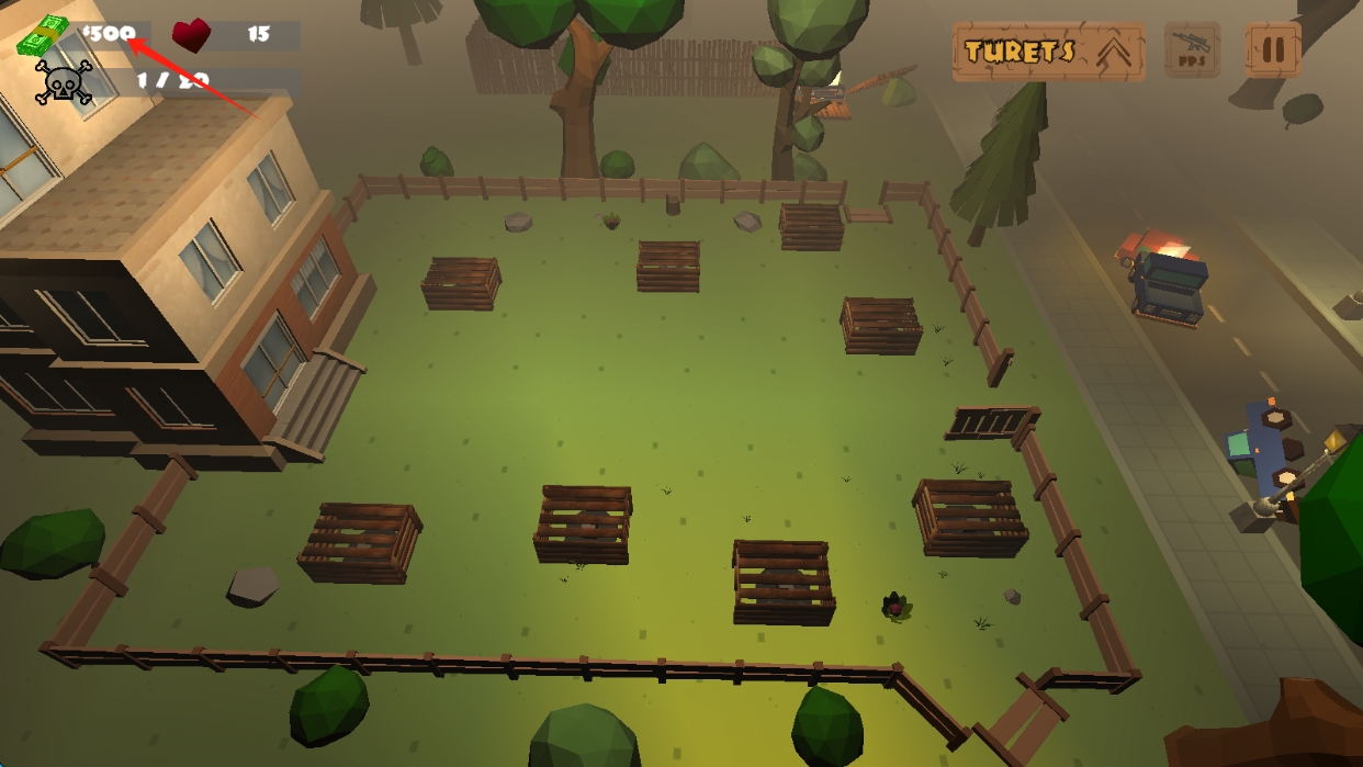 2、進入塔防場景,根據(jù)箭頭提示,查看金錢數(shù)量,合理規(guī)劃防御布局,點擊查看金幣。