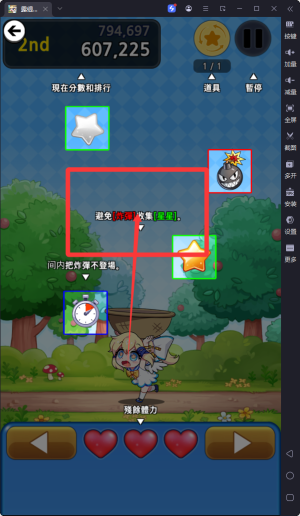 2、游戲過程中必須特別注意避開炸彈,一旦誤接炸彈就會(huì)引發(fā)爆炸并扣除已獲得的分?jǐn)?shù),需要時(shí)刻保持警惕。