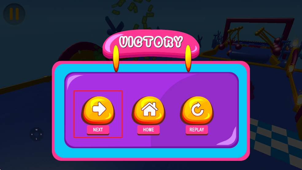 3、通關(guān)后點(diǎn)擊界面左側(cè)橙色NEXT按鈕,進(jìn)入下一關(guān),挑戰(zhàn)難度更高的跑酷關(guān)卡與新障礙。