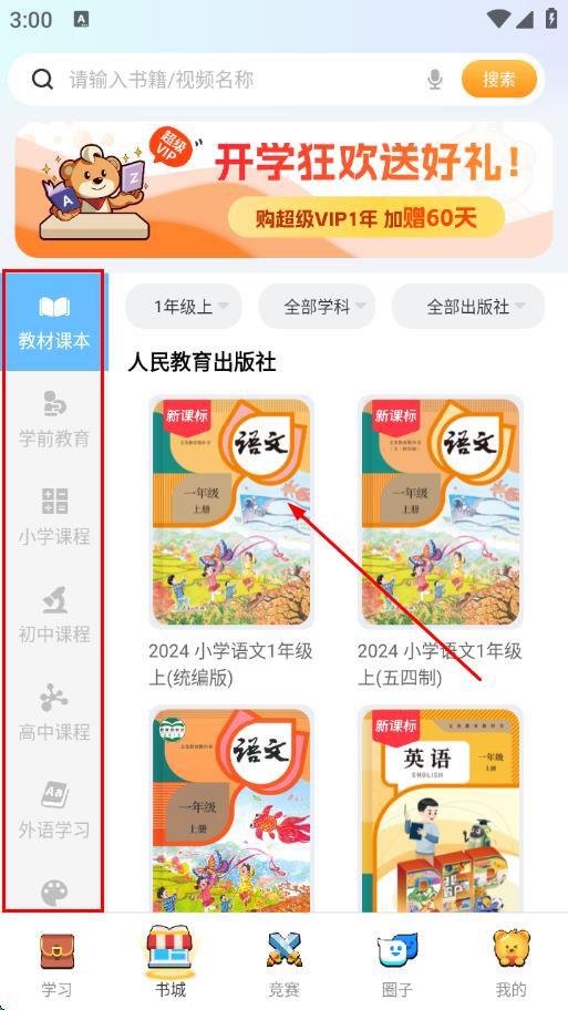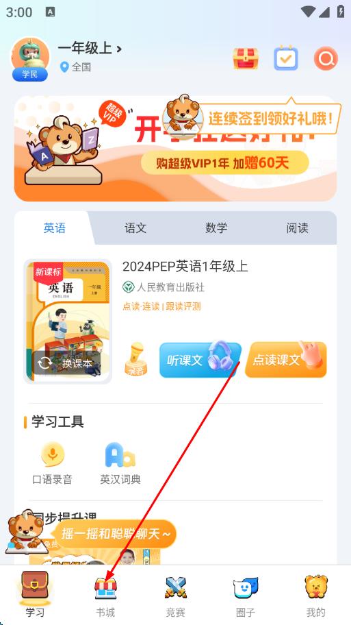 1、打開(kāi)好爸爸點(diǎn)讀機(jī)App,在底部導(dǎo)航欄中點(diǎn)擊書(shū)城選項(xiàng),進(jìn)入書(shū)城界面。