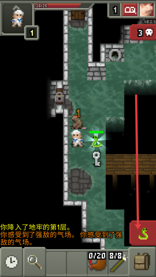 2、開始探索過程,點擊前方的路線來控制人物向前移動,碰到老鼠和蛇之類的動物盡量躲避或者進行攻擊。