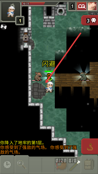 3、看到對面過來的兩只老鼠,進行躲避,注意頭頂上的能量條,避免和老鼠接觸后能量條減半,適時攻擊。