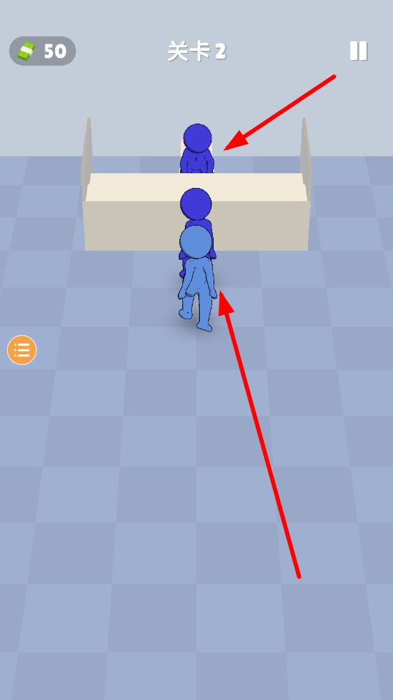 3、當(dāng)所有人員都按顏色規(guī)則在規(guī)定位置排列整齊,達(dá)成目標(biāo)排序狀態(tài),完成當(dāng)前關(guān)卡挑戰(zhàn)。