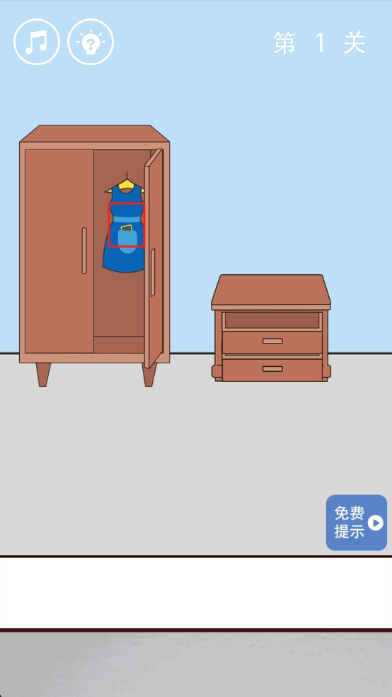 2、打開衣柜后,點擊藍(lán)色連衣裙上紅框標(biāo)注位置,獲取藏在衣物處的道具,完成本關(guān)關(guān)鍵操作。