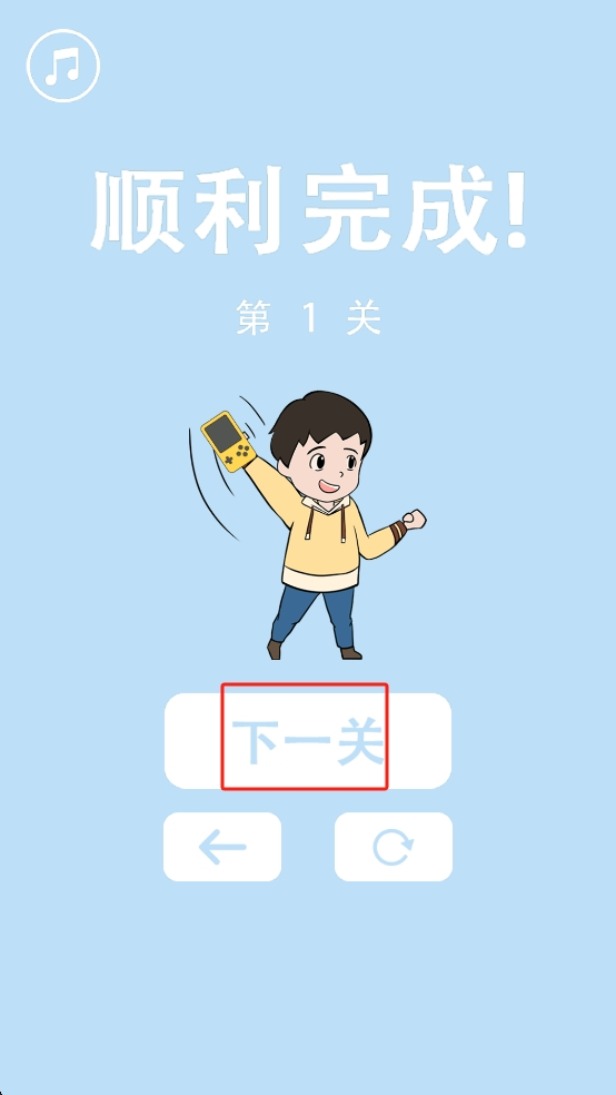 3、順利完成第1關(guān)后,點擊界面中下一關(guān)按鈕,即可進(jìn)入新關(guān)卡,繼續(xù)體驗游戲解謎挑戰(zhàn)。