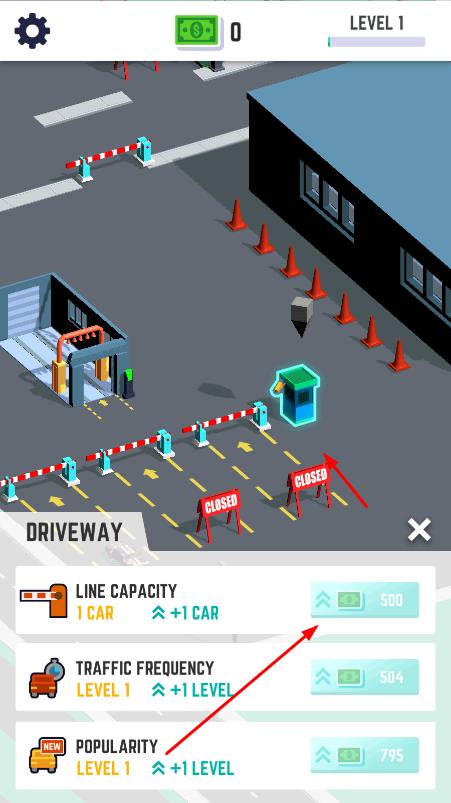 2、點擊界面中的洗車設(shè)施或相關(guān)區(qū)域,安排車輛進(jìn)入洗車流程,通過賺取的金錢,點擊界面提升車道容量。