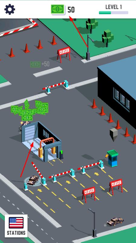 1、在初始關(guān)卡場景中,可看到洗車設(shè)施,通過完成洗車訂單來賺取金錢,屏幕上方會顯示當(dāng)前擁有的金錢數(shù)量。