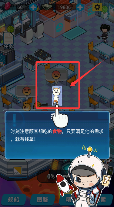 3、留意店內(nèi)顧客頭頂?shù)臍馀萏崾荆c(diǎn)擊查看他們渴望品嘗的特色美食。