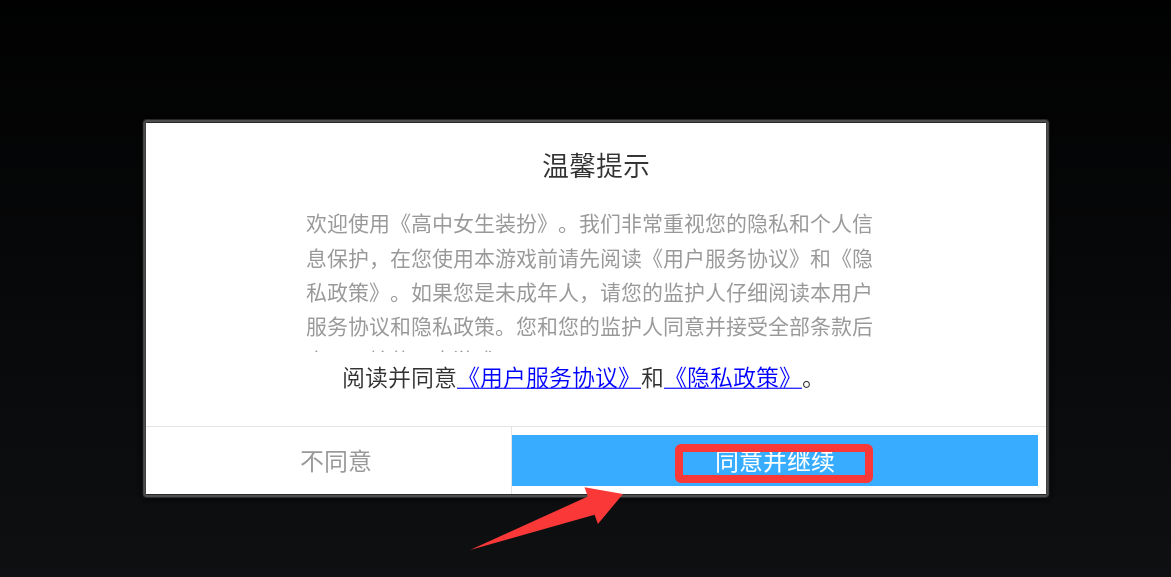 1、點(diǎn)擊溫馨提示里的同意并繼續(xù)。