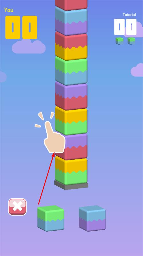 1、在初始界面中,可看到屏幕下方有多余的彩色方塊,點(diǎn)擊彩色方塊,將其拖動(dòng)到高塔上,進(jìn)行堆疊消除。