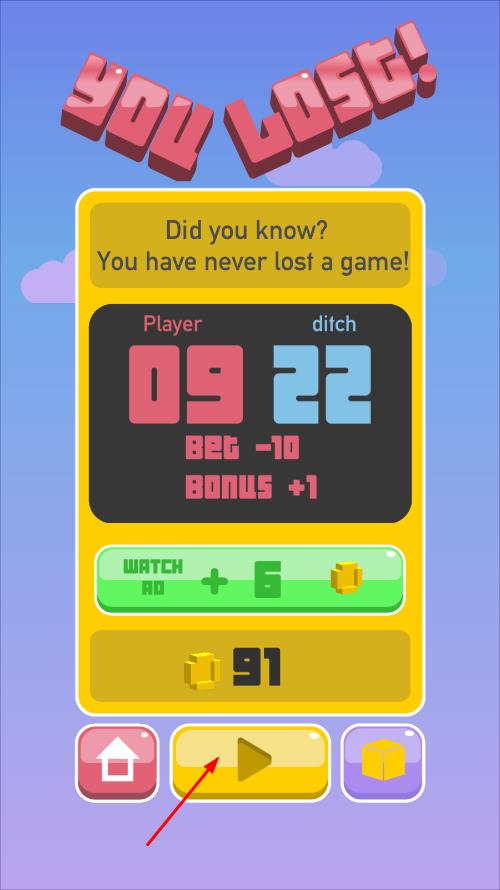 3、若在堆疊時(shí)沒有放置好方塊,導(dǎo)致高塔失衡倒塌,游戲結(jié)束,點(diǎn)擊下方的按鈕,可重新開始游戲。
