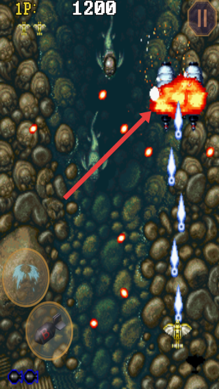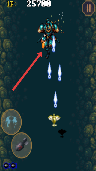 2、在躲避場景中佛像周邊的彈幕攻擊,小心的拾取增加攻擊的道具,靈活調(diào)整自己戰(zhàn)機(jī)的位置。
