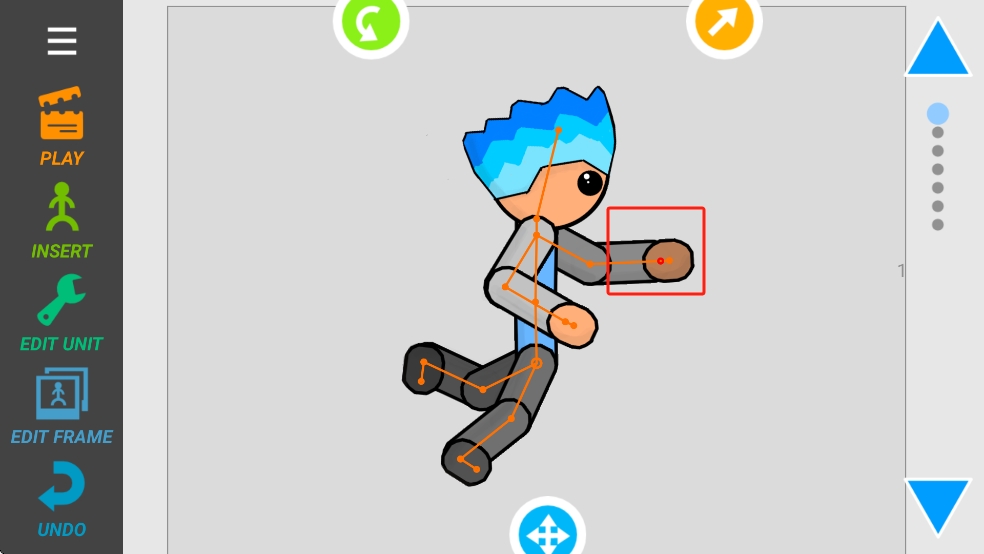 1、點(diǎn)擊火柴人手臂等關(guān)節(jié),拖動(dòng)調(diào)整位置,設(shè)置動(dòng)作姿態(tài),利用EDIT UNIT等工具,編輯單個(gè)肢體單元。