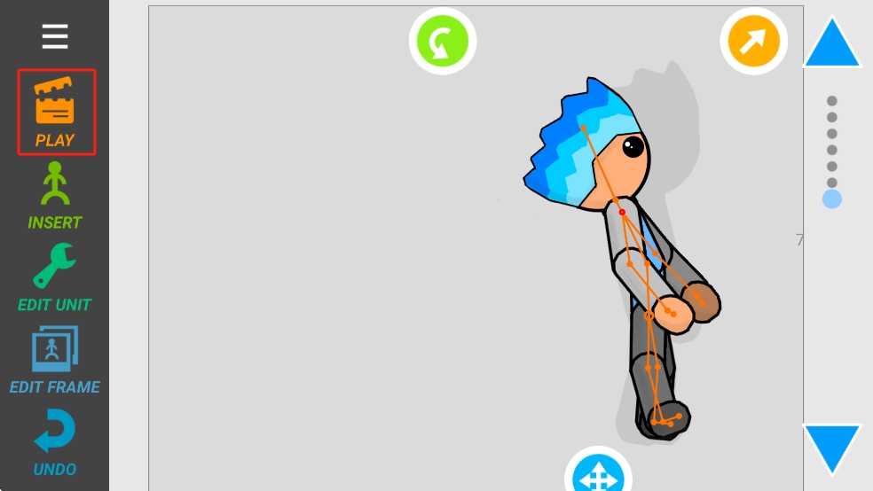3、完成動(dòng)作編輯后,點(diǎn)擊左側(cè)PLAY按鈕,預(yù)覽火柴人動(dòng)畫效果,檢查動(dòng)作連貫性,可返回編輯調(diào)整,制作連貫動(dòng)畫序列。