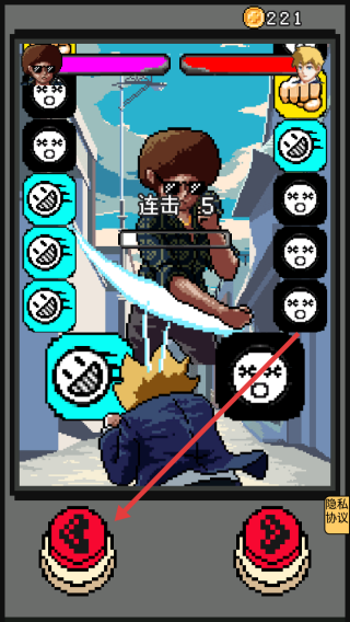 3、角色互動(dòng)鮮活:對(duì)手被打服后會(huì)跪地比弱手勢(shì),贏了能揪著對(duì)手的衣領(lǐng)晃悠,這種擬人化互動(dòng)讓角色更鮮活,仿佛在和真實(shí)的街頭混混對(duì)決。