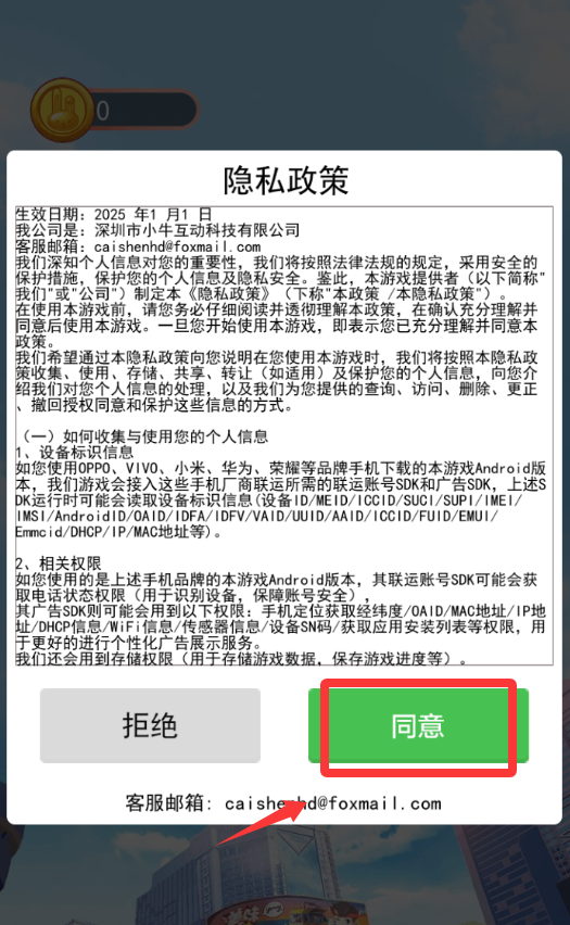 1、點(diǎn)擊隱私政策紅色框框的同意并進(jìn)入。