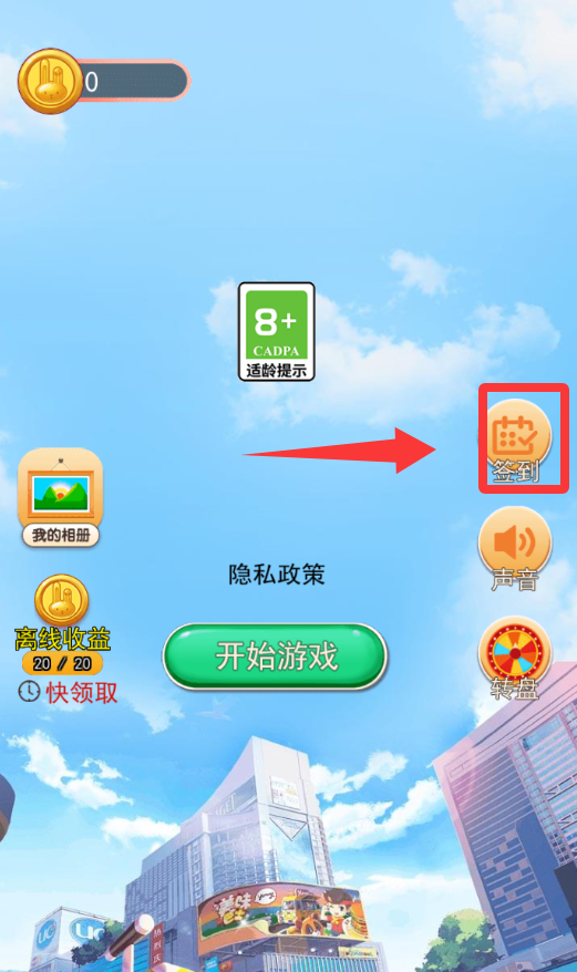 4、進(jìn)入游戲就點(diǎn)擊簽到每日都有獎(jiǎng)勵(lì)的。