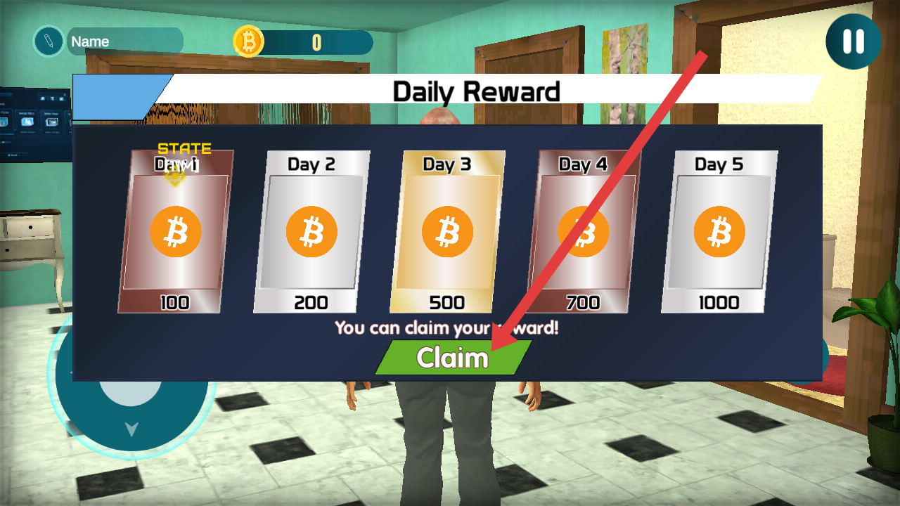 1、在每日獎勵的界面,點(diǎn)擊Claim按鈕,領(lǐng)取今日的比特幣獎勵,這是每天獲取貨幣的便捷方式。