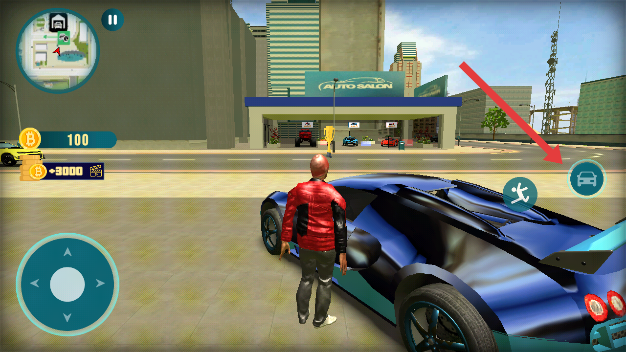 2、操控角色靠近車輛時,點(diǎn)擊右側(cè)汽車圖標(biāo),進(jìn)入駕駛的狀態(tài),操控車輛在城市中移動探索。