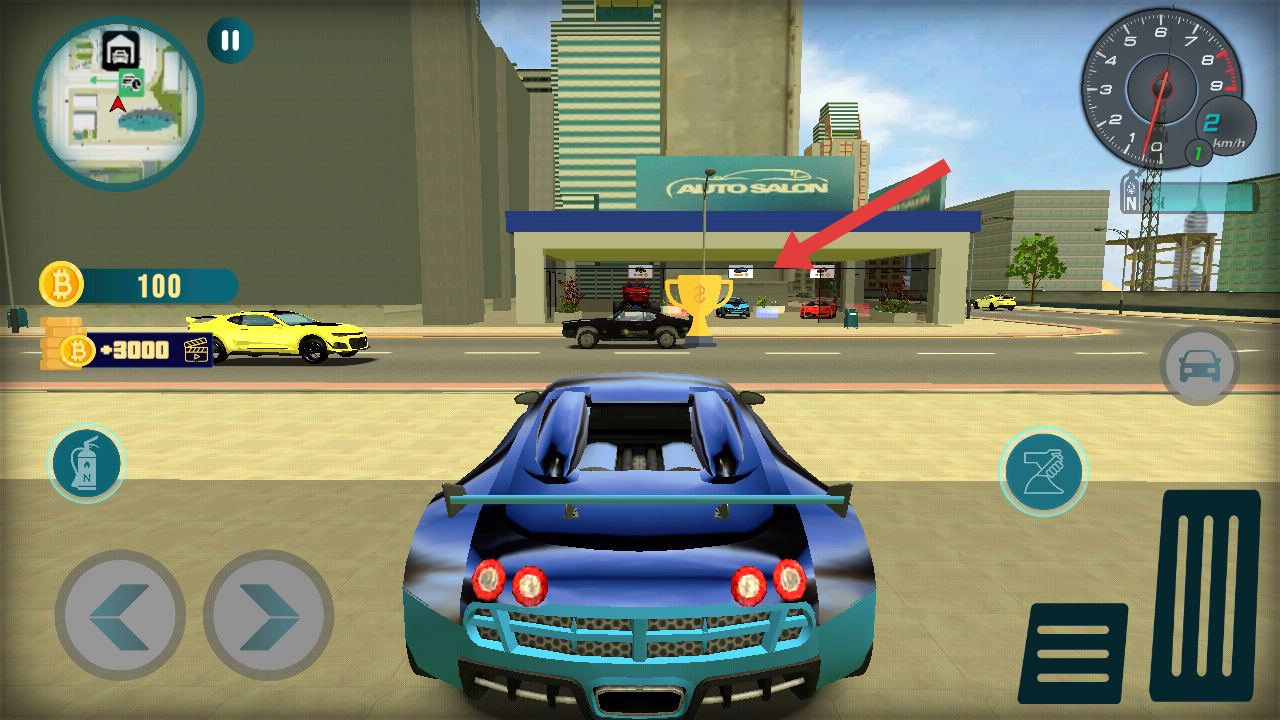 3、駕駛車輛時,跟隨指引前往Auto Salon汽車沙龍,還需要拾取路途上的獎杯,可以解鎖車輛的性能。