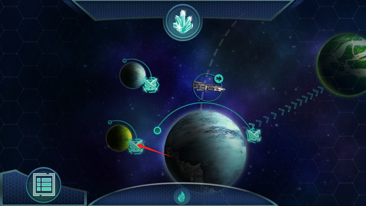 2、在星系地圖界面,選擇不同星球,進入戰(zhàn)斗,收集資源,提升飛船戰(zhàn)斗能力,點擊選擇關卡。