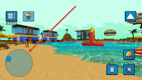 3、在進(jìn)入到游戲場景中,可以滑動(dòng)操控左下角虛擬搖桿,控制角色在海灘場景移動(dòng),探索游戲內(nèi)容。