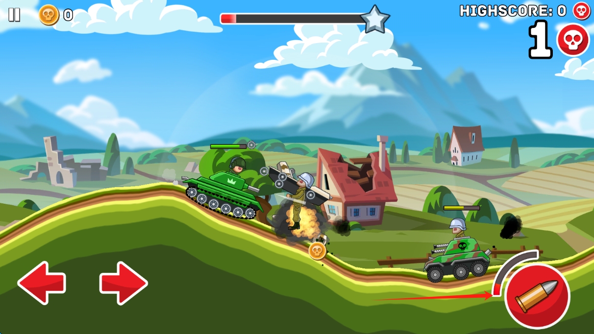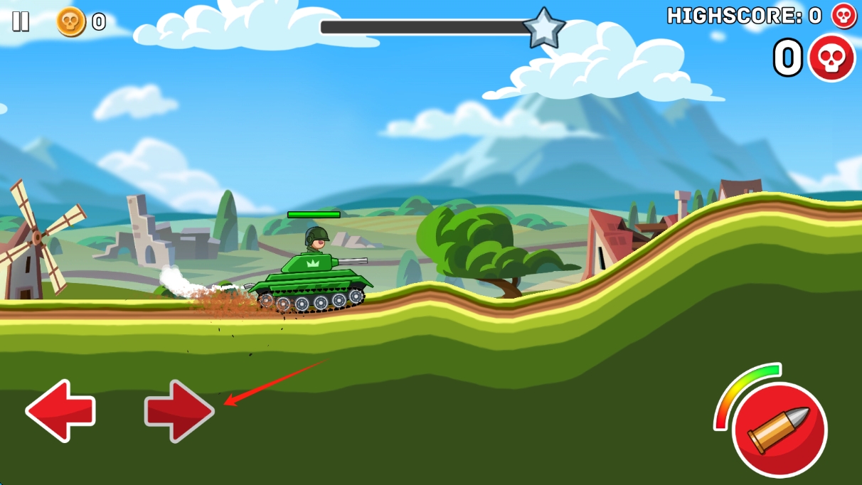 2、遇到敵人時(shí),點(diǎn)擊子彈按鈕發(fā)射炮彈進(jìn)行攻擊,擊敗敵人獲取分?jǐn)?shù)和獎(jiǎng)勵(lì),點(diǎn)擊按鈕射擊敵人。
