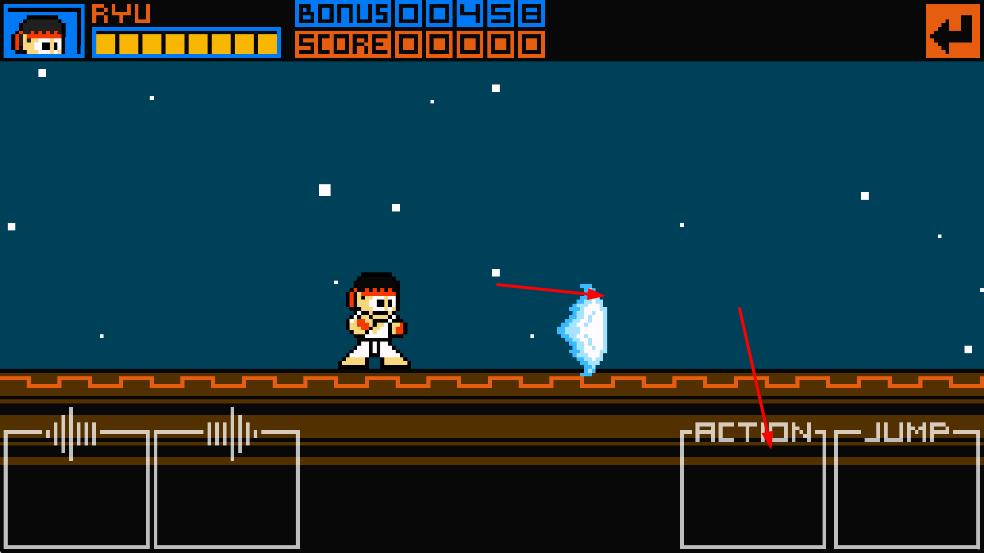 1、操控角色隆在像素風(fēng)格的場(chǎng)景中移動(dòng),場(chǎng)景為帶有像素點(diǎn)的深色背景。