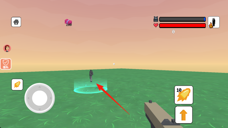 1、左搖桿移動角色,靠近藍(lán)色光圈紅箭頭,觸發(fā)召喚物拾取,可獲得新武器增益。