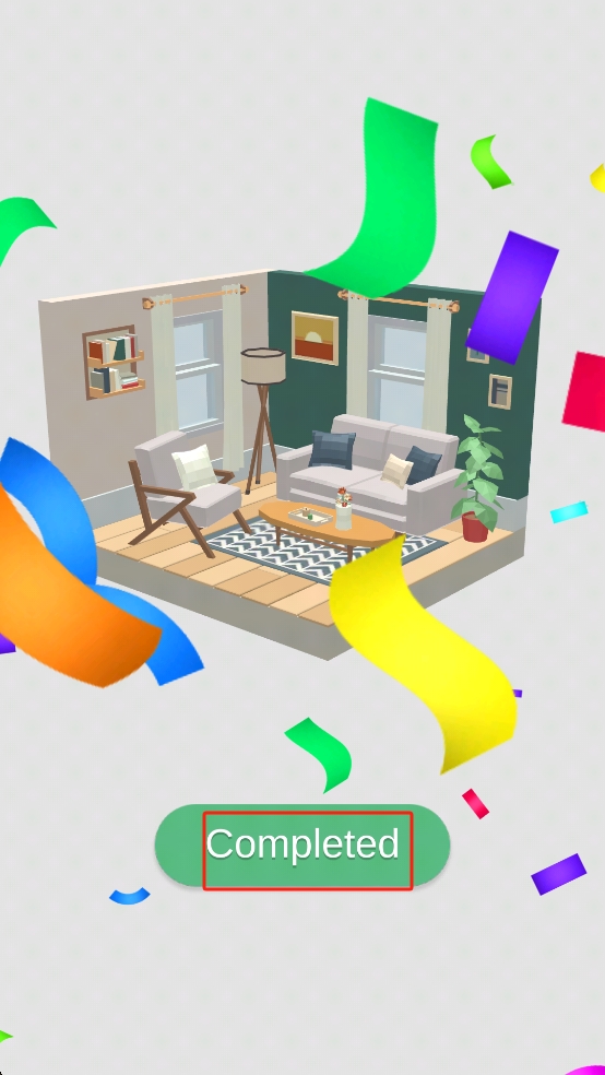 3、成功完成方塊拼接與房間解謎后,點(diǎn)擊Completed按鈕,確認(rèn)關(guān)卡完成,即可進(jìn)入新的關(guān)卡。