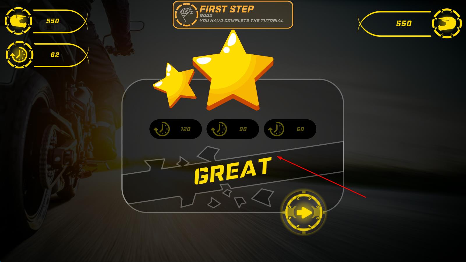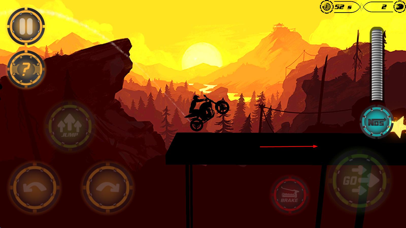 1、進(jìn)入游戲后,選擇初始摩托車與場(chǎng)景傍晚、日落或夜間,熟悉操控方式,在蜿蜒軌道上嘗試完成基礎(chǔ)特技動(dòng)作,感受剪影風(fēng)格下的競(jìng)速樂趣,開啟首場(chǎng)競(jìng)技挑戰(zhàn)。