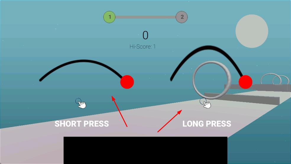 1、操控紅色球體在賽道上滾動(dòng),賽道上有不同的障礙物和環(huán)形結(jié)構(gòu),通過點(diǎn)擊屏幕進(jìn)行操作,短按和長按可以控制球體的滾動(dòng)方向和速度。