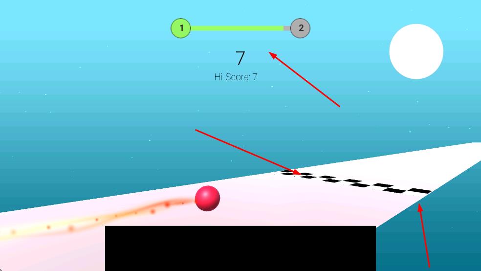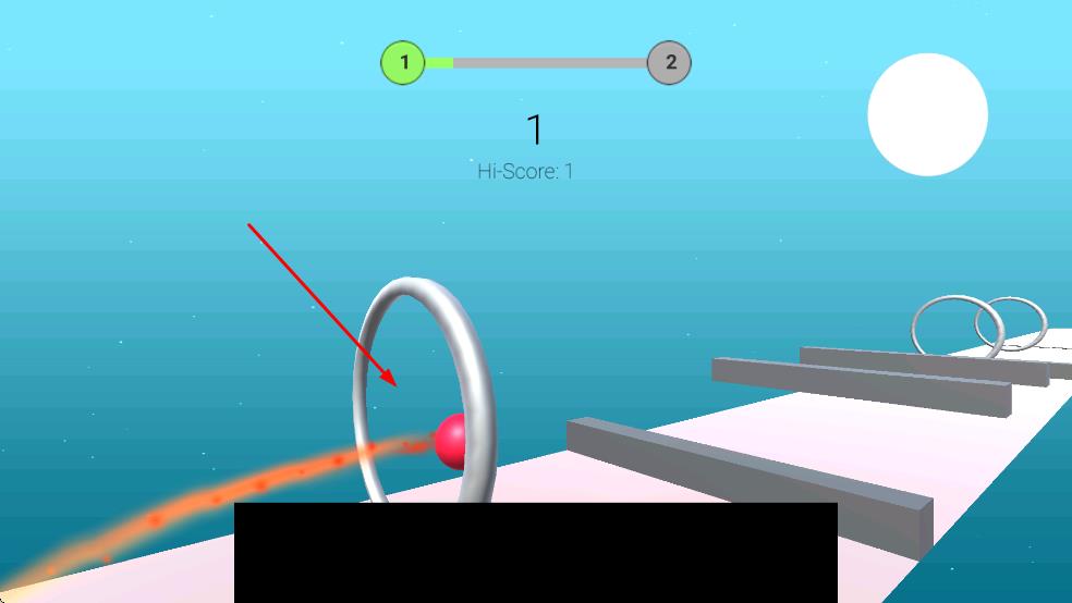 2、引導(dǎo)球體穿過環(huán)形結(jié)構(gòu),收集分?jǐn)?shù),分?jǐn)?shù)會(huì)顯示在屏幕上方,同時(shí)關(guān)注關(guān)卡進(jìn)度條,了解游戲進(jìn)度。