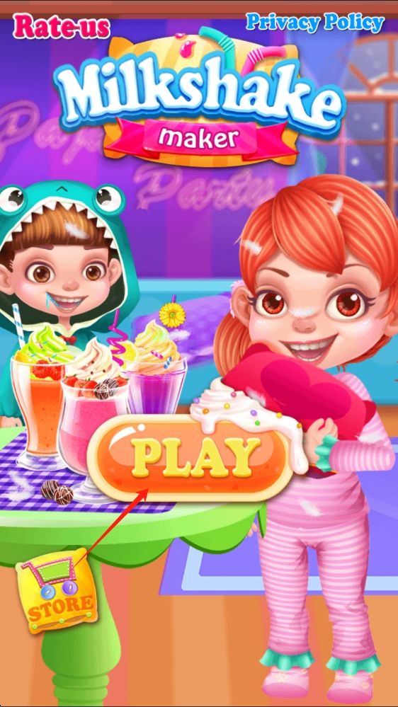 1、在Milkshake-maker啟動(dòng)界面,點(diǎn)擊PLAY,開(kāi)啟制作奶昔的趣味之旅,點(diǎn)擊進(jìn)入游戲。