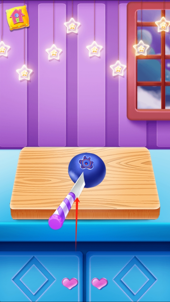 2、游戲中,根據(jù)提示,用刀精準(zhǔn)切割藍(lán)莓等食材,為制作奶昔準(zhǔn)備原料,點(diǎn)擊切水果。