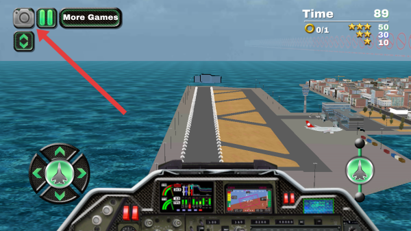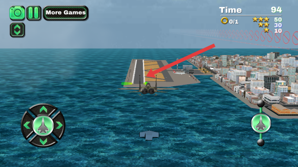 1、開局操控自己戰(zhàn)機朝著系統(tǒng)指向的跑道飛行,需要及時調(diào)整狀態(tài)進(jìn)行精準(zhǔn)降落,完成關(guān)卡目標(biāo)。