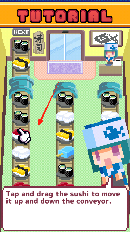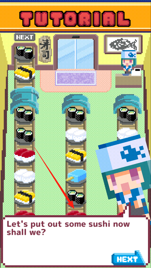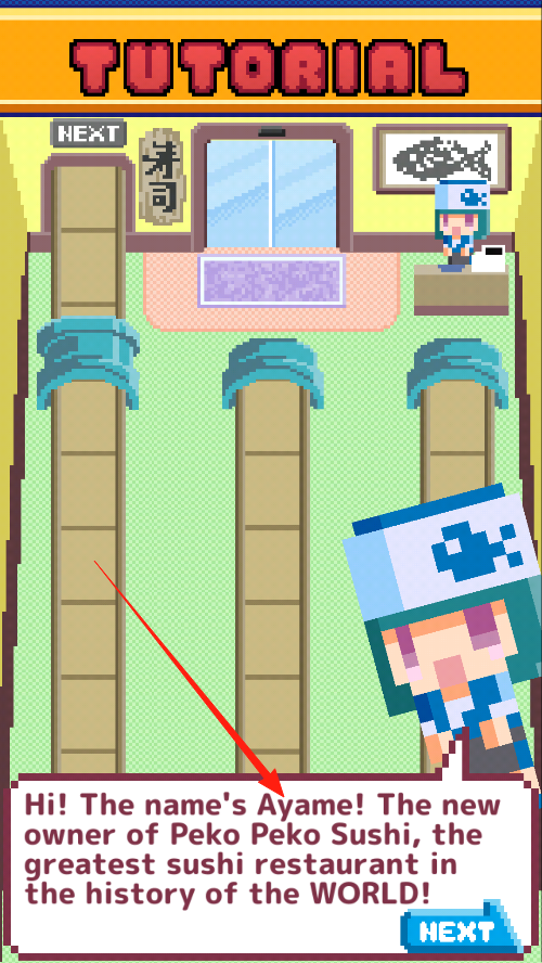1、點(diǎn)擊NEXT推進(jìn)教程,跟隨Ayame的指引,了解壽司店經(jīng)營(yíng)背景,開啟新手引導(dǎo)流程,熟悉角色設(shè)定。