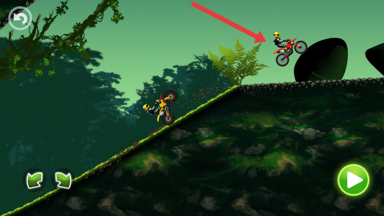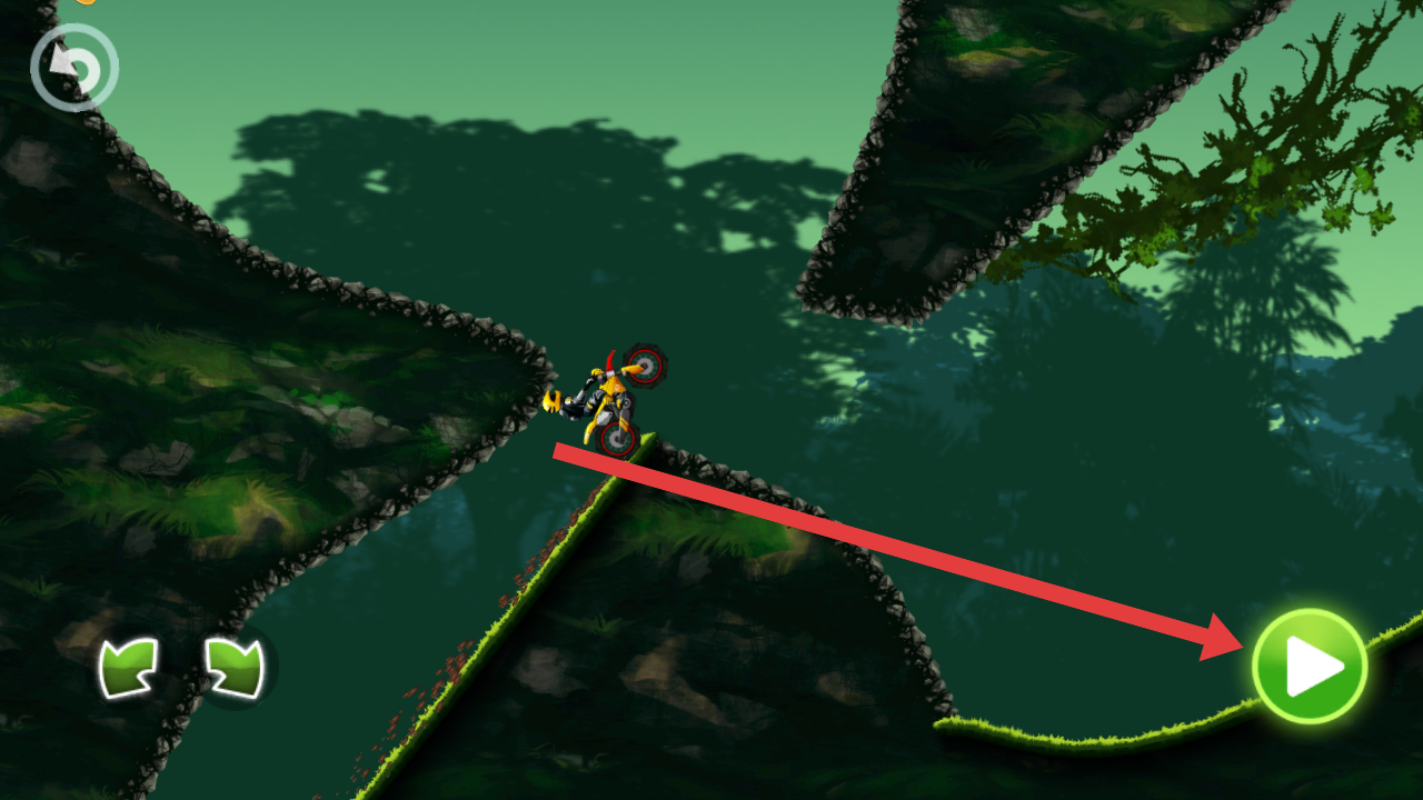 1、點(diǎn)擊右下角綠色播放按鈕,加快摩托車的速度,需要時(shí)刻利用左邊的按鍵來把控摩托的平衡。