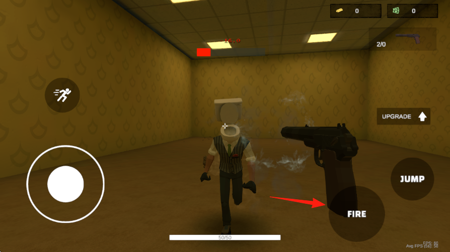 3、敵人靠近時(shí),可配合JUMP躲避,若武器強(qiáng)度不夠,后續(xù)用金幣點(diǎn)UPGRADE升級(jí),完成新手關(guān)卡。