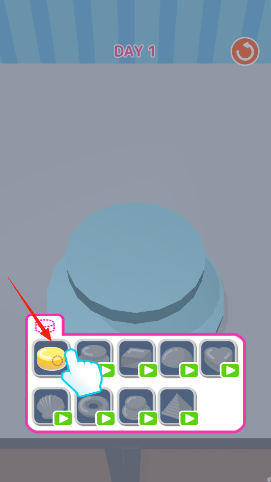 2、選擇蛋糕模具進(jìn)行按壓,從模具欄選樣式,塑造形狀,改變物品外觀,體驗(yàn)造型定制玩法。
