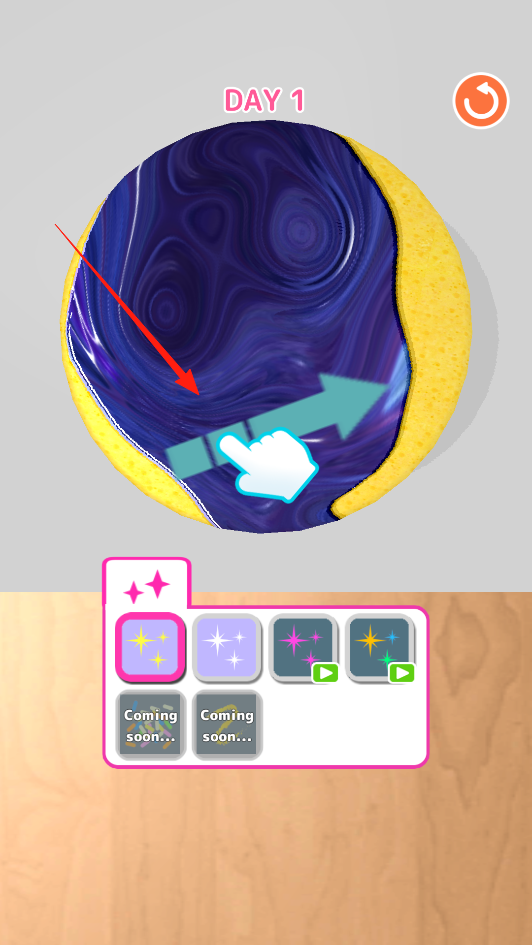 3、滑動(dòng)手指涂抹顏料,控制方向?yàn)槲锲飞仙瓿裳b飾步驟,體驗(yàn)色彩繪制機(jī)制。
