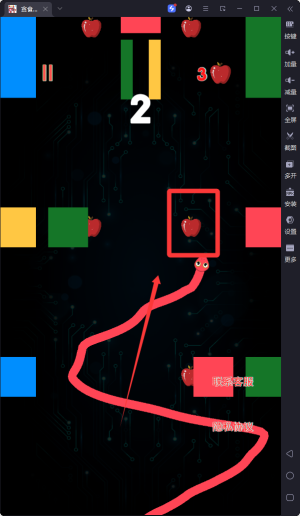 1、玩家需要精準操控貪吃蛇吃掉懸空的蘋果,同時巧妙避開各種移動障礙物和陷阱,最終成功返回黑洞完成關卡目標,這種玩法既考驗反應速度又需要策略思考。
