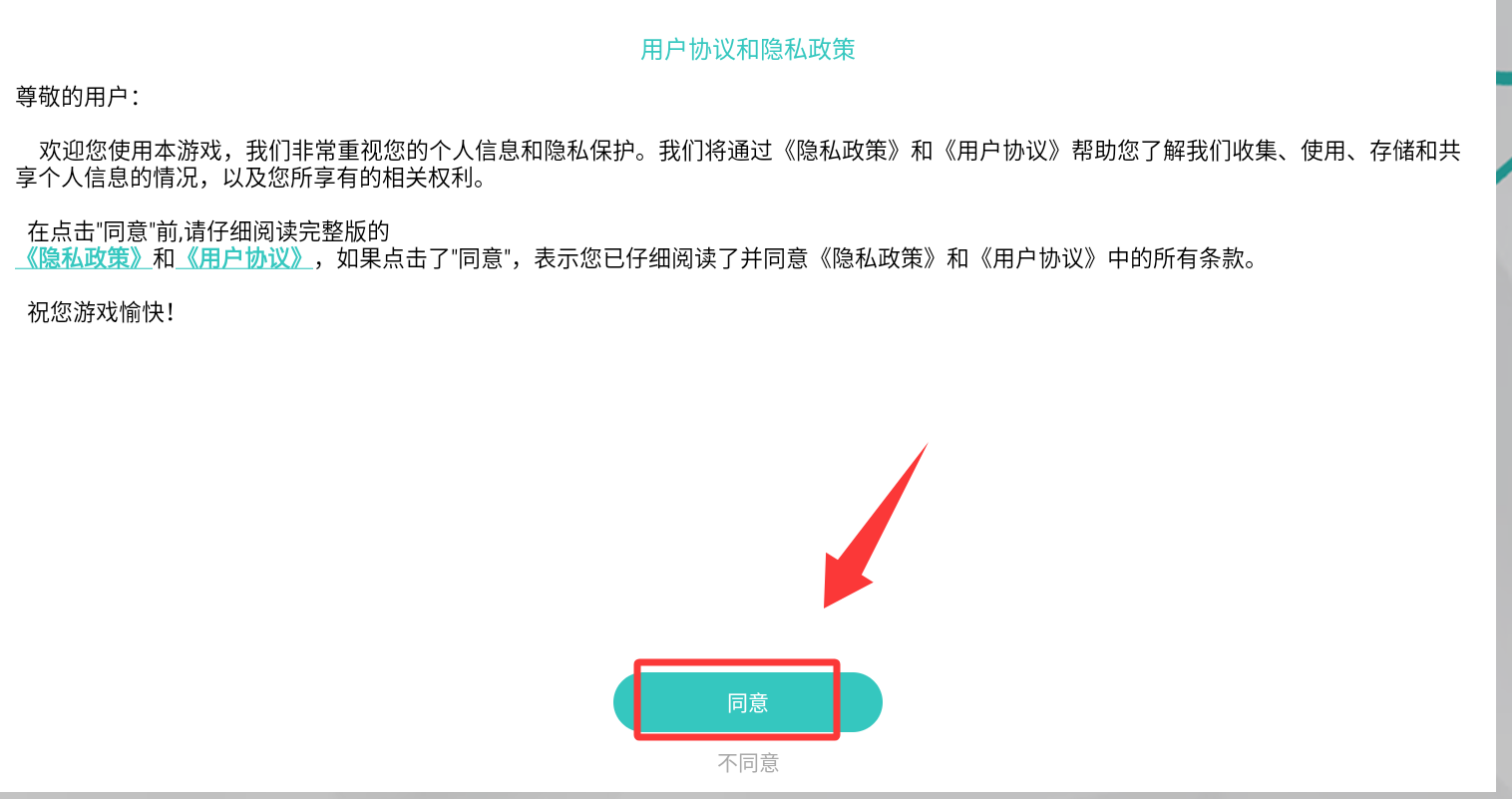 1、點(diǎn)擊用戶協(xié)議和隱私政策里的同意并進(jìn)入。