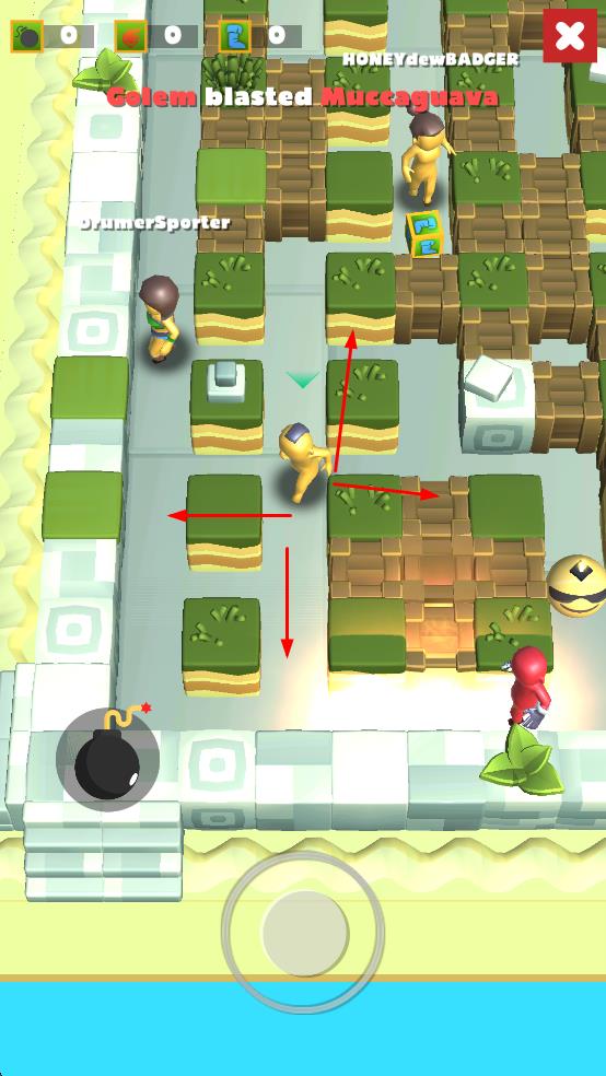 3、與其他玩家在迷宮中互動,躲避對手炸彈同時精準(zhǔn)出擊,獲取勝利推進(jìn)游戲進(jìn)程。
