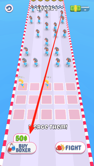 1、熟悉操作開啟首次對(duì)戰(zhàn):進(jìn)入后學(xué)習(xí)角色合并的方法和拳擊的基礎(chǔ)操作,了解匹配對(duì)手的規(guī)則,在初始場(chǎng)景中嘗試合并角色,與首個(gè)對(duì)手展開簡(jiǎn)單較量。
