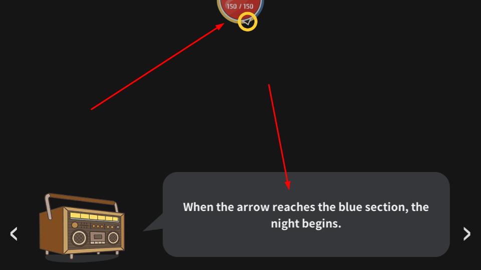 2、跟隨收音機(jī)對話指引,緊盯上方圓形指針,待箭頭進(jìn)入藍(lán)色區(qū)域時觸發(fā)夜晚機(jī)制,解鎖夜間專屬挑戰(zhàn)與事件。