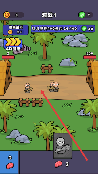 3、持續(xù)召喚士兵阻擋敵人,優(yōu)先防守?cái)撤焦?shì)猛,利用AD加速功能加快戰(zhàn)斗節(jié)奏,完成金幣目標(biāo)。